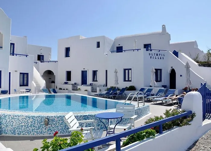 La résidence est à environ 4 km du Rocher de Skaros, à environ 7 km de la Cathédrale orthodoxe métropolitaine. L'hotel est établi non loin de la baie d'Amoudi. En plus, Olympic Villas se trouve à environ 15 minutes en voiture du Musée préhistorique de Théra.